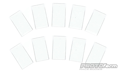 This is a pack of 10 conveniently pre-cut end plates for 190mm touring car wings. Die-cut to IFMAR specs of 40mm x 20mm, these end plates make easy replacements for lost or damaged end plates. Add these to your TC wing with a high-strength double-sided tape of your choice (not included) for increased stability at high-speeds.